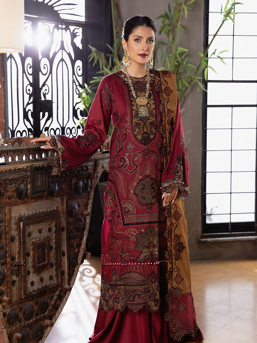 | Schiffli Embroidered Duppata on Dyed SilkĀ | 2.5 Yards |
